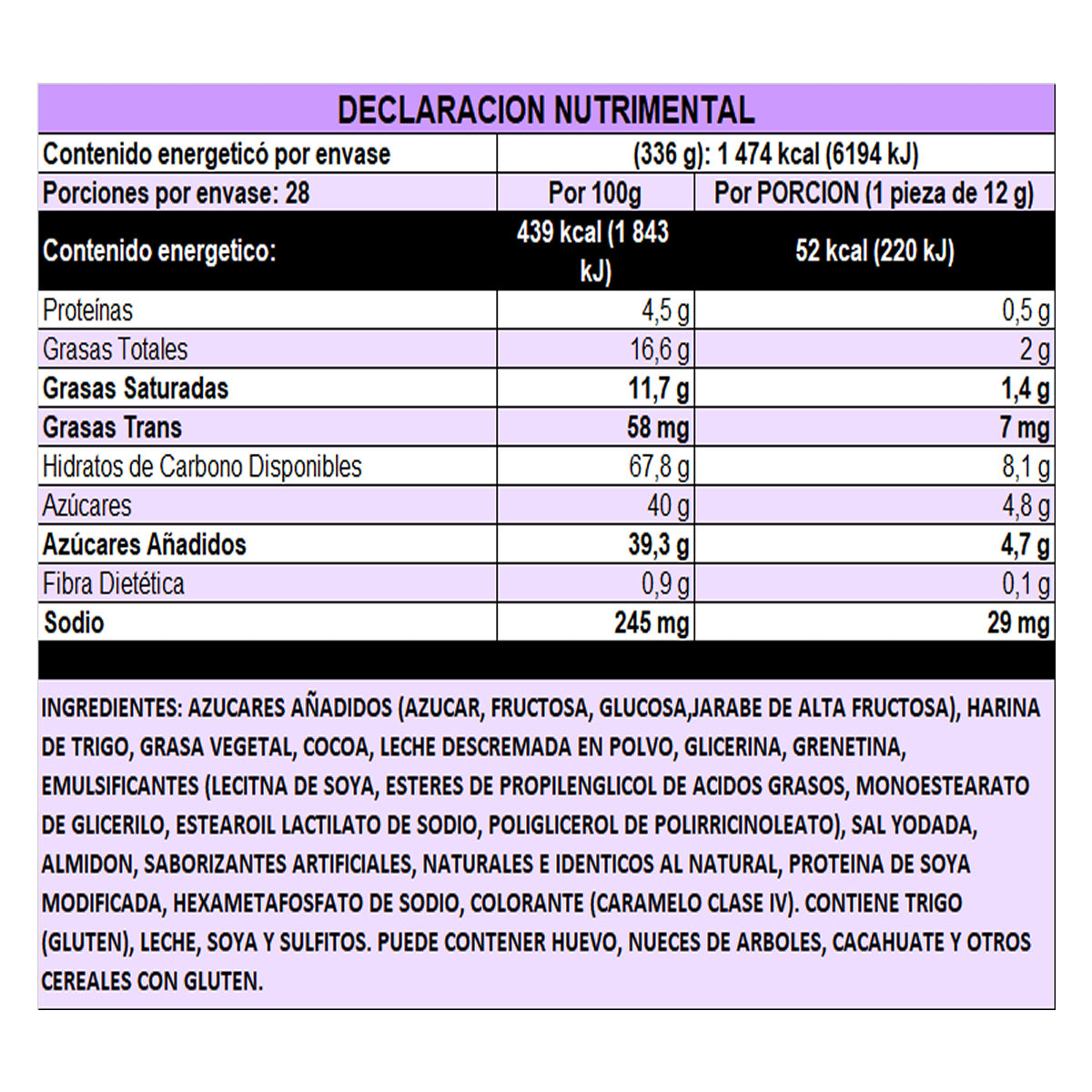 - Tipo de Producto: Galleta con malvavisco y cobertura de chocolate