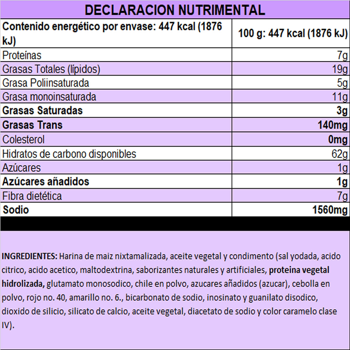 - Sabor Principal: Extremo (Chile y Limón). Intenso, picante y ácido.