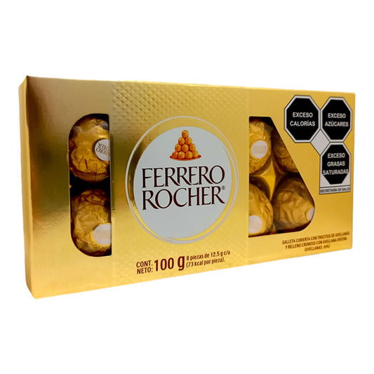 Ferrero Rocher Chocolate Con Galleta Cubierta Con Trozos De Avellana 8 Piezas