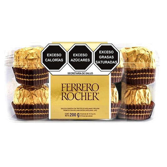 Ferrero Rocher Chocolate Con Galleta Cubierta Con Trozos De Avellana 16 Piezas